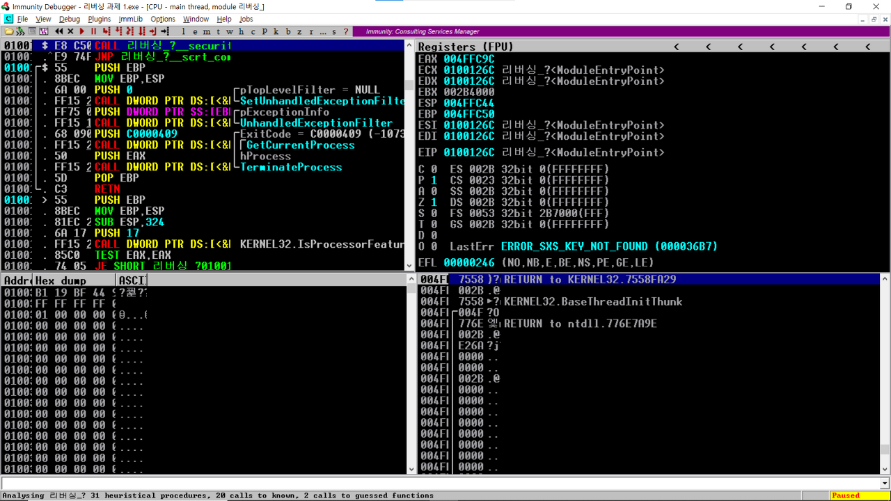 - Ctrl+G: 덤프 창에서 사용되며 입력된 주소를 찾습니다.
